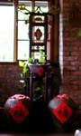 | ガイドブックに必ず載っている店「阿妹茶酒館ーアーメイチャ−チゥワンー」に 入りました。チゥフェンは、その昔は金鉱山でした。今はもう採掘しつくして、 情緒ある観光地になっていますが、その坂道の途中に色々にあるお店では、 このように山から見下ろす景色と涼しい風が心地よいです。 |